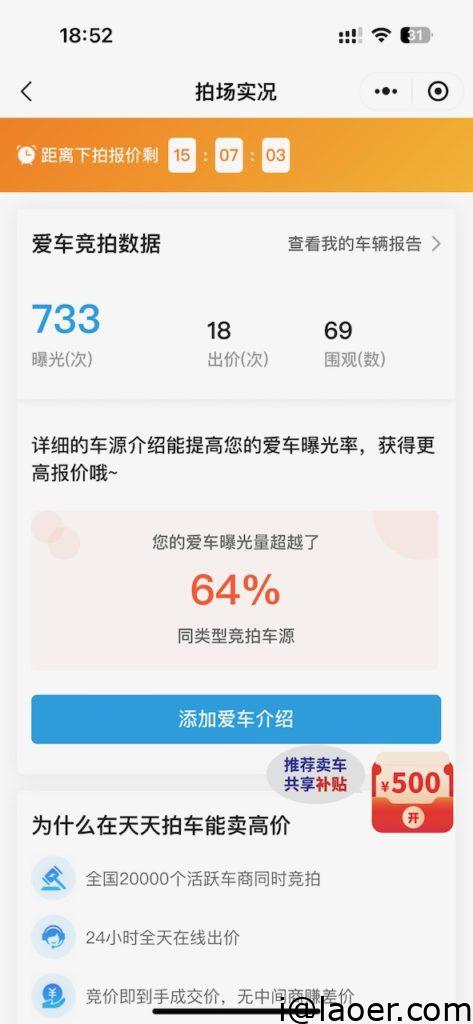 虽然我几乎同时在两个平台报名,但天天拍车的跟进和车辆检测明显慢了一步,出价也比瓜子晚了整整一天。虽然这一延迟不算致命,但在追求效率的互联网时代,确实让天天拍车在时间上处于劣势。